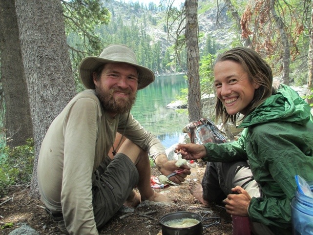 Then we dried out and packed up for the last five miles of the day. The trail turned brick-red and rocky as it rose to a mountain pass and headed back down through the trees and into the valley where we rejoined Dante, Andy, Kiki and the kids. They had already set up camp and were ready and waiting to greet us with cheers and instant oreo pie. The kids looked like they had been having an awesome time swimming and running around in the woods. It was great to see them having so much fun.