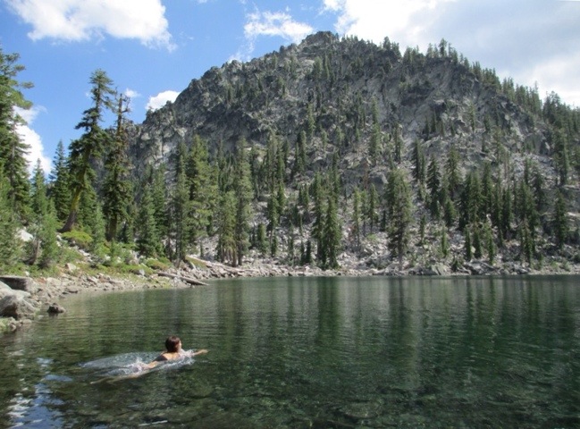 The lake was chilly, but Karin and I took the plunge. There’s nothing like floating on your back in a mountain lake and looking up at the clouds. Not one single thing.