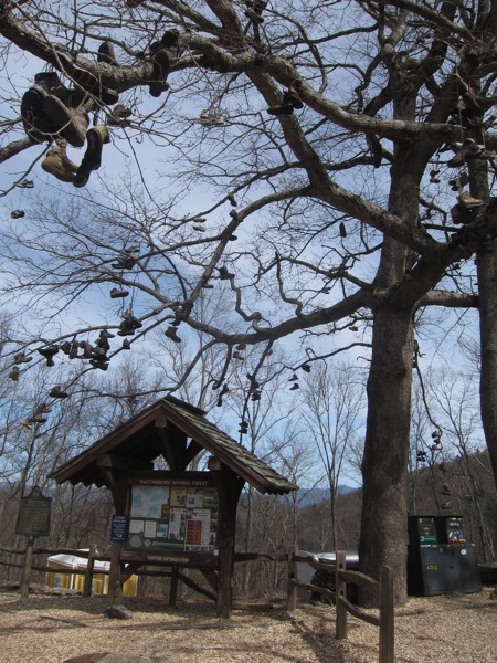 Back at the Neels Gap trailhead, we chuckled at this tree decorated with the failed footwear of frustrated hikers. Obviously we aren’t the only hikers struggling with this first section of the AT.
