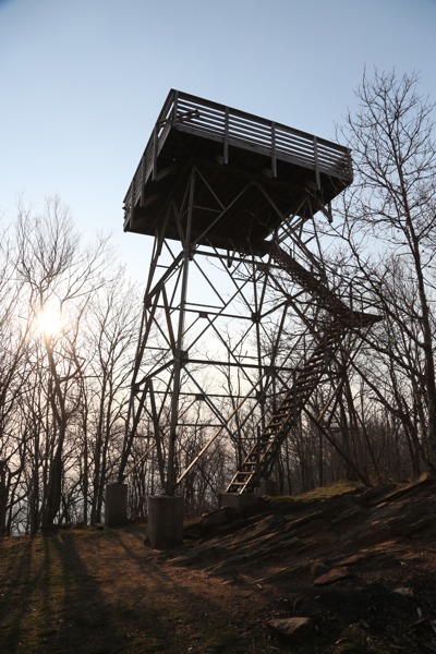 Our alarm rang extra early so we could beat the sunrise. We climbed the nearby stone tower at the top of Wayah Bald and watched the first light fall on distant peaks.