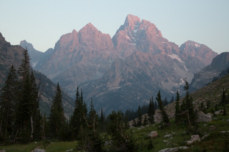 Alpenglow kissed the peaks. It was time to sleep and get energized for our final day on the Teton Crest Trail.