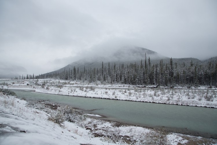 The next morning we woke to snow. An inch or so of snow in the Canadian Rockies in mid-September isn’t crazy. The bad news was that much more snow was forecast to fall later in the day. Our backpacking trip to Berg Lake in Mount Robson Provincial Park would have to wait until another trip. We decided to head back south to lower elevation via the Icefields Parkway.