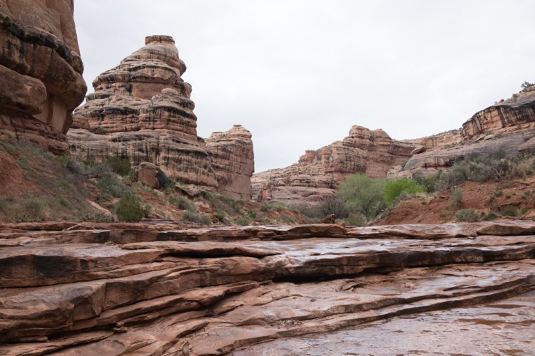 Rain fell overnight and into the morning of our third day in the canyon. A cliff overhung Split Level Ruin, keeping it dry. We ate our breakfast up near the ruins and explored the area a bit more as we waited for the rain to calm down.